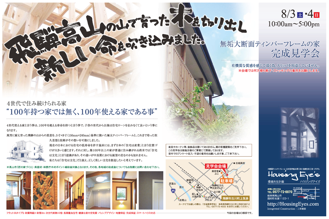 【 ハウジングアイズ 】では、飛騨高山にてパッシブな高断熱思想を用いて、恒久的な省エネ快適住宅を御提案しております。
