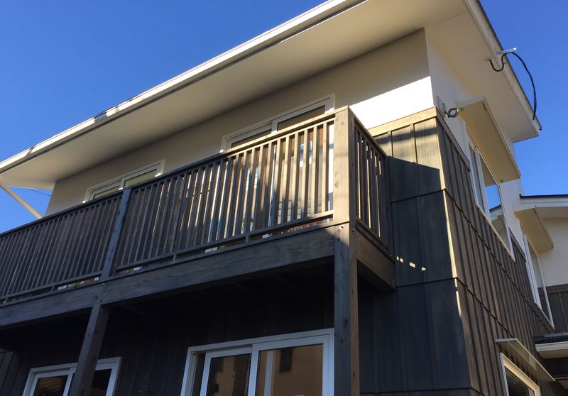 青い空 深い軒 日射取得用の大きな開口。