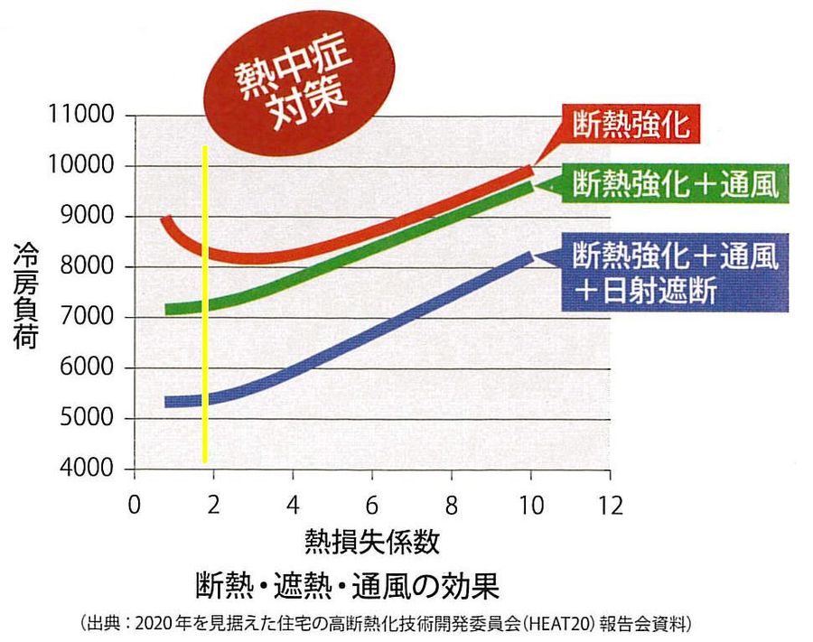 断熱の強化のみ進めると 冷房負荷が増えていきますね。