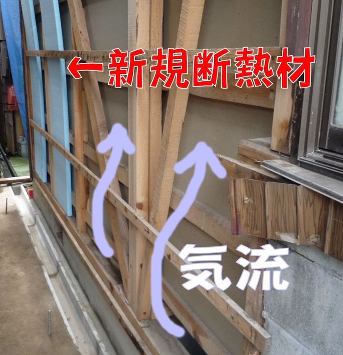 矢印が防湿シート。防湿層は連続しなければ意味はありません。