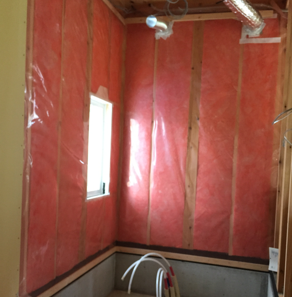 ユニットバスを入れる前ですが 壁には綺麗に高性能グラスウールが充填され