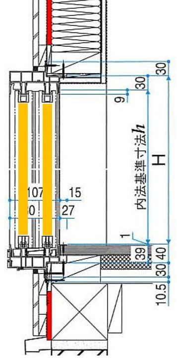 黄色い線が窓ガラスですが窓全体が躯体に乗っている事が解りますね。