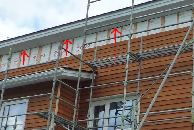 ↓こちら画像の赤い矢印が外壁下地の空気の流れ(通気層)